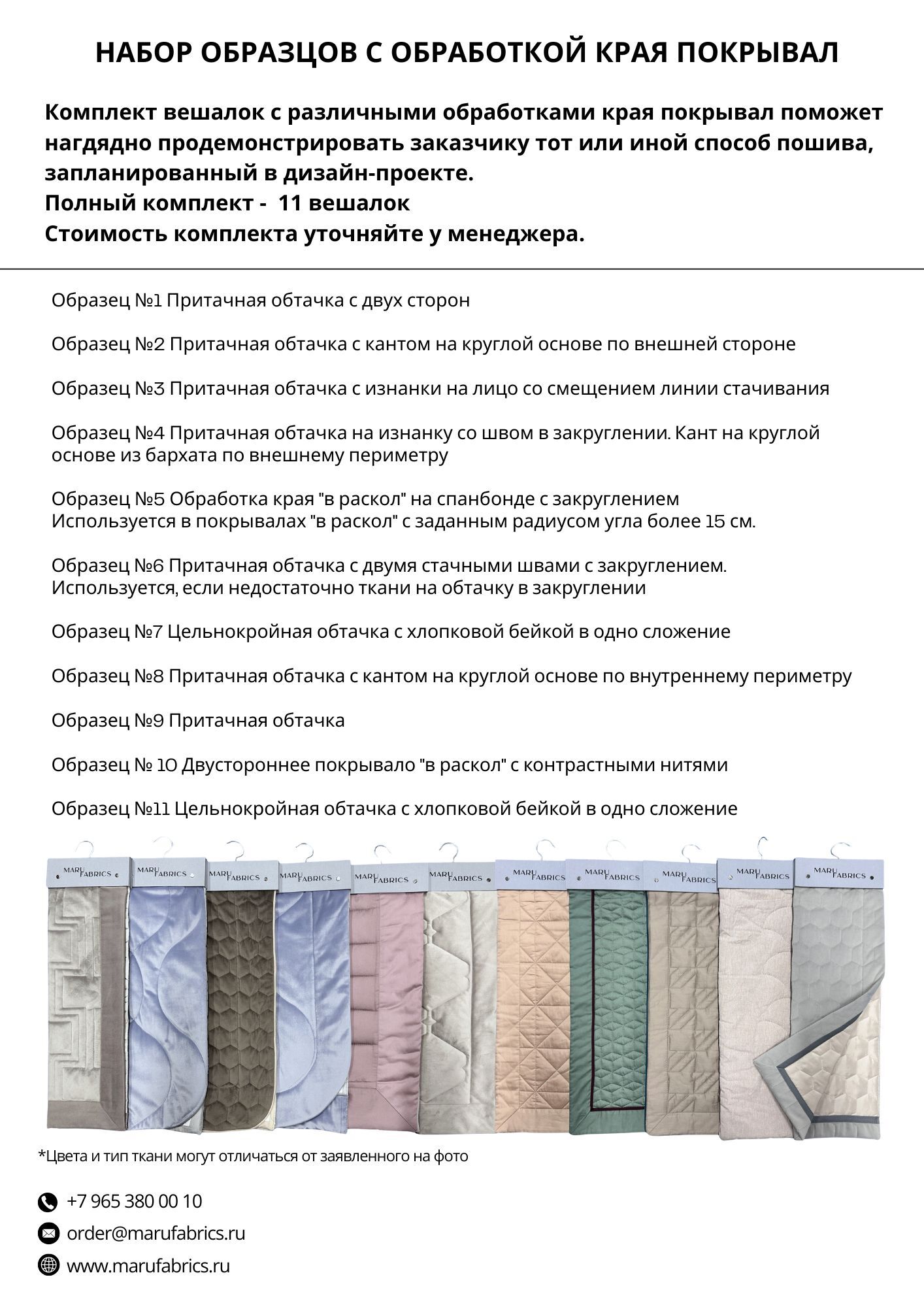 - При заказе изделий из наших однотонных тканей рекомендуется приобрести комплект образцов, подбор по фото/видео не производится.